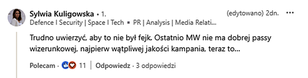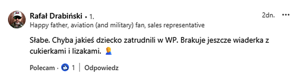 Fatalnie należy ocenić wpis na X atakujący krytyków. Skoro „poważne” treści nie docierają do odbiorców, to znaczy, że osoby odpowiedzialne za komunikację społeczną w Marynarce Wojennej nie potrafią dobrać formy atrakcyjnej dla odbiorcy.
